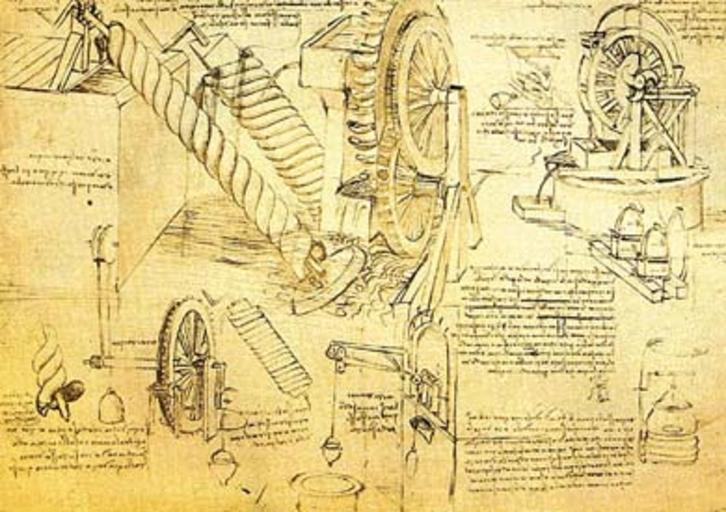 Keywords: Архимедовы винты и водяные колеса.jpg исунок Леона до да Винчи - А химедовы винты и водяные колеса http //vinci ru Creator Leonardo da Vinci Reproduction of a painting that is in the public domain because of its age PD-old-100 Mechanical engineering by Leonardo da Vinci