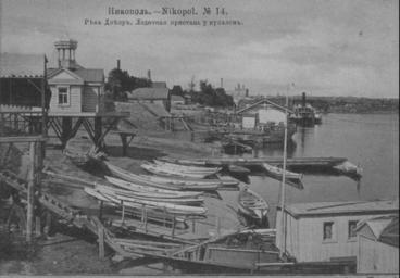 Keywords: Никопольская пристань в конце XIX века.jpg ru Лодочная п истань г икополь XIX век Фото из а хива икопольского к аеведческого музея Original uploader was AeroSSC at http //ru wikipedia org 2009-02-27 PD-OLD Nikopol Ukraine