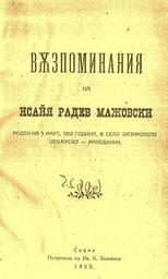 | Keywords: Спомените на Исаија Мажовски.jpg cite book Вѫзпоминания ажовски Исайя Радевъ 1922 Печатница на Ив К Божиновъ София mk асловната ст ана на Спомените на Исаија ажовски издадени 1922 год во Софија http //macedonia-history blogspot com/2006/11/isaja-radev-mazovski-mazovski-isaja html Isaija Mažovski 1852 1926 1922 PD-art Isaija Mažovski |