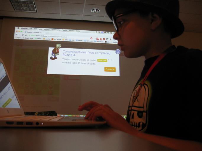 Keywords: kalamazoo kalamazoo public library kalamazoopubliclibrary code indoor KPL Code Camp: Teens work together to solve problems while learning basic computer programming skills, www.kpl.gov KPL Code Camp: Teens work together to solve problems while learning basic computer programming skills, www.kpl.gov