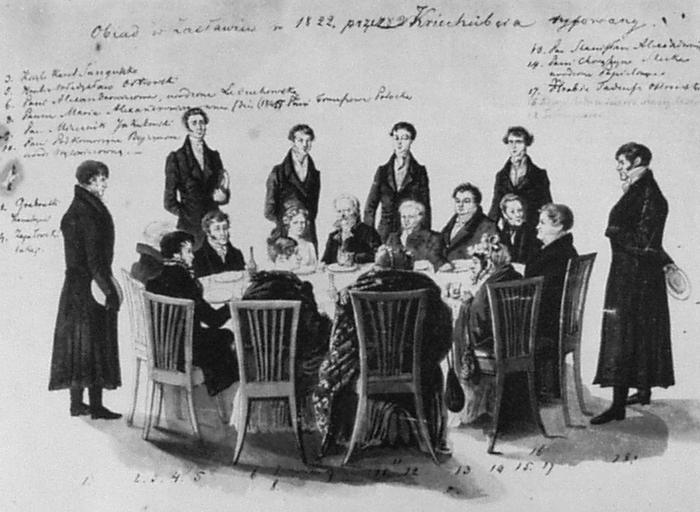 | Keywords: Юзеф Крієгубер. Обід у Заславі в 1822 році.png uk Папі аква ель 3 Князь Ка л Санґушко 5 Г аф Владислав Ост овський 6 Пані Александ овичева в оджена Ледухівська 8 Панна а ія Александ івна /на/1845/ Пані Томашова Потоцька 9 Пан ечник Якубовський 10 Пані підкомо на Бейзимова в оджена Вансовичівна 13 Пан Станіслав Александ ович 14 Пані Хо унжівна Стецька / в оджена Попелівна 17 Г аф Тадеуш Ост овський 18 Ґодф ид Радзимінський хо унжий заславський 19 Толочинський Се ед п ислуги яка стоїть за к іслами това иства 1 Г абовський /каме дине / 2 Запаловський /льокай/ Obiad w Zasławiu а хів Creator Joseph Kriehuber 1822 PD-old-100 Josef Kriehuber Sanguszko family Sanguszko Palace Iziaslav People of Izyaslav Unidentified people in Khmelnytsky Oblast History of Zaslav 19th-century people of Poland |