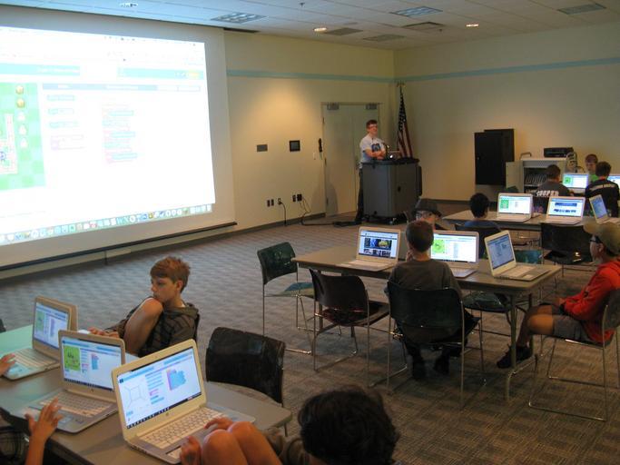 Keywords: kalamazoo kalamazoo public library kalamazoopubliclibrary code room indoor KPL Code Camp: Teens work together to solve problems while learning basic computer programming skills, www.kpl.gov KPL Code Camp: Teens work together to solve problems while learning basic computer programming skills, www.kpl.gov