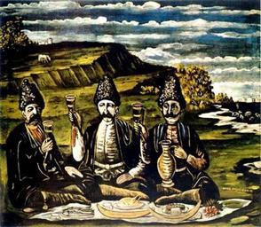 Keywords: Кутеж трех князей.jpg Artwork ka სამი თავადის ქეიფი ru Кутеж т ех князей ка тина Бенкет т ьох князів іко Пі османі http //bibliotekar ru/kPirosmani/18 files/image001 jpg bibliotekar ru < 1918-04-10 Creator Niko Pirosmani Other versions Source http //bibliotekar ru/kPirosmani/18 htm bibliotekar ru PD-old-auto 1918 Paintings by Niko Pirosmani Wine of Georgia in art Wine drinking in art Oil paintings Picnics in art Tavadi Nobility of Georgia in art Fur hats in art Fur clothing of native people of Georgia Fur fashion in 1917