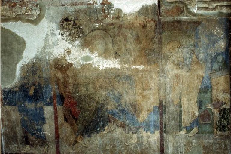 Keywords: იუდას ამბორი.jpg The mural in Betania Monastery Georgia The mural is called იუდას_ამბ რი The official disk of Betania monastery XII-XIII centuries Created by order of Queen Tamar of Georgia PD-art Betania northern wall murals