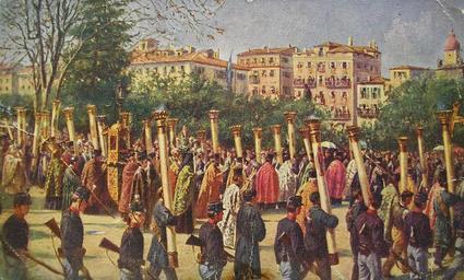 | Keywords: Η Λιτανεία του Αγίου.JPG  Ο  ερίφημος  ίνακας του ζωγράφου Γ Σαμαρτζή 1868-1925 Η Λιτανεία του Αγίου Σ υρίδωνα Tableau de Georgios Samartzis 1868-1925 La Procession de Saint Spyridon représentant la procession annuelle sur l'Esplanade de Corfou Famous painting by Georgios Samartzis 1868-1925 The Procession of Saint Spyridon featuring the annual procession on the Spianada of Corfu 1912<ref> cite web http //www corfuland gr/el/istorika-kerkyra/corfu-history/h-litaneia-toy-agioy-m sabbato-pasxa html Η λιτανεία του Αγίου -  Σάββατο 2010-11-22 </ref> Original uploaded at 2008-10-20 18 20 20; Transferred 2010-11-22 10 15 48 UTC Original uploaded on el wikipedia Original comment Α ό καρτ- οστάλ της Ασ ιώτης ΕΛΚΑ From a postcard by Aspiotis-ELKA Georgios Samartzis 1868-1925 ; Original uploaded by Mipa5 Transfered by Place Clichy Original upload log page el wikipedia CE 97_ CE 9B CE B9 CF 84 CE B1 CE BD CE B5 CE AF CE B1_ CF 84 CE BF CF 85_ CE 91 CE B3 CE AF CE BF CF 85 JPG Upload date User Bytes Dimensions Comment 2008-10-20 18 20 20 Mipa5 954193 17541058 <small><nowiki> Περιγραφή Ο  ερίφημος  ίνακας του ζωγράφου Γ Σαμαρτζή Η Λιτανεία του Αγίου Σ υρίδωνα Πηγή Ημερομηνία Δημιουργ�</nowiki></small> Notes and references <references/> Spianada Saint Spyridon Processions in Corfu Easter in Corfu Orthodox cross processions Easter in art 1912 in Corfu Georgios Samartzis |