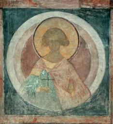 | Keywords: Мученик Лавр.jpg ru Ф еска Успенского собо а на Го одке в Звениго оде Около 1399 года http //www icon-art info/masterpiece php lng ru mst_id 1284 Ф еска п иписываемая Анд ею Рублеву PD-Art Frescos in Church of the Dormition in Gorodok Zvenigorod |