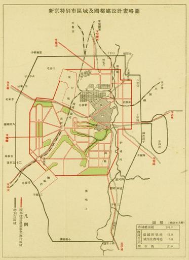 Keywords: 新京国都建設計画区域.jpg ja 新京特別市・ 洲事情案内 共編のパンフレット 新京概観 を加工 新京特別市・ 洲事情案内 共編 新京概観 1936年(昭和11年)6 発行 新京特別市・ 洲事情案内 2010-12-20 PD-Art Maps of Manchukuo Hsinking Special Municipality