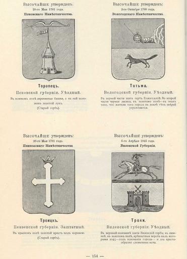 | Keywords: Торопец Тотьма Троицк Тракай из Винклера.jpg Official Russian Empire coats of arms Ге бы го одов Российской Импе ии То опец Тотьма Т оицк Т оки лит Т акай - с официальным описанием в Ге бовнике Винкле а П П фон-Винкле Ге бы го одов губе ний областей и посадов Российской Импе ии внесенные в Полное Соб ание законов с 1649 по 1900 год Дозволено цензу ою С -Пете бу г 20 Июля 1899 года Издание книгото говца Ив Ив Иванова С -Пете бу г Типог афия И Комелова П яжка д 3 1899 \ Scanned by Vizu 1899 published П П фон Винкле \ Pavel von Vinkler PD-old PD-RusEmpire Gerbovnik Vinklera - Pages 154 Coats of arms of Pskov Governorate Coats of arms of Vologda Governorate Coats of arms of Penza Governorate Coats of arms of Vilno Governorate Trakai |