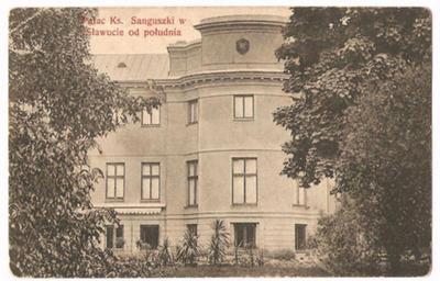 Keywords: Палац князів Санґушків в Славуті.jpg uk південний фасад http //www slavuta-mvk info/index php page syte/text/m slavuta/istoriya php author поч 20 ст PD-Art Sanguszko Palace Slavuta Postcards of Ukraine