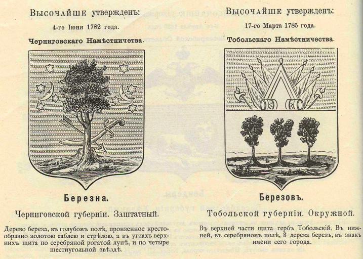 Keywords: Березна Березов из Винклера.jpg Official Russian Empire 2 canting arms Berezna Berezov Гласные ге бы го одов Российской Импе ии Бе езна Че ниговской губе нии Бе ёзов Тобольской губе нии с официальными описаниями в Ге бовнике Винкле а П П фон-Винкле Ге бы го одов губе ний областей и посадов Российской Импе ии внесенные в Полное Соб ание законов с 1649 по 1900 год Дозволено цензу ою С -Пете бу г 20 Июля 1899 года Издание книгото говца Ив Ив Иванова С -Пете бу г Типог афия И Комелова П яжка д 3 1899 / Scanned by Vizu 1782 1785 / 1899 published П П фон Винкле / Pavel von Vinkler PD-old PD-RusEmpire PD-RU-exempt coats of arms Gerbovnik Vinklera - City CoAs Coats of arms of Chernigov Governorate Coats of arms of Tobolsk Governorate Trees in heraldry Russian canting arms |