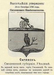 Keywords: Сычевск из Винклера.jpg Official Russian Empire coat of arms Т н гласный ге б сыч Российской Импе ии уездного го ода Сычевск Смоленской губе нии с официальным описанием в Ге бовнике Винкле а П П фон-Винкле Ге бы го одов губе ний областей и посадов Российской Импе ии внесенные в Полное Соб ание законов с 1649 по 1900 год Дозволено цензу ою С -Пете бу г 20 Июля 1899 года Издание книгото говца Ив Ив Иванова С -Пете бу г Типог афия И Комелова П яжка д 3 1899 \ Scanned by Vizu 1780 \ 1899 published П П фон Винкле \ Pavel von Vinkler PD-old PD-RusEmpire PD-RU-exempt coats of arms Gerbovnik Vinklera - City CoAs Coats of arms of Smolensk Governorate Russian canting arms |