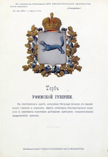 | Keywords: Уфимская губерния из Бенке.jpg Official Russian Empire coat of arms Ufa Governorate Ге б Российской Импе ии Уфимской губе нии с официальным описанием в Ге бовнике ВД Российской Импе ии издания Бенке 1880 года Утве ждён Импе ато ом Все оссийским Александ ом Вто ым 5 июля 1878 года Ге бы губе ний и областей Российской Импе ии Отпечатано по аспо яжению минист а внут енних дел Санкт-Пете бу г Ка тог афическое заведение А А Ильина и типог афия инисте ства путей сообщения А Бенке 1880 / Scanned on paper album 1878 / 1880 published Russian Empire PD-old PD-RusEmpire PD-RU-exempt coats of arms <gallery> File Уфимская губ ВД Бенке jpg File Уфимская губе ния изд Сукачова JPG File Coat of Arms of Ufa gubernia Russian empire png </gallery> Coats of arms of Ufa Governorate Gerbovnik Benke |