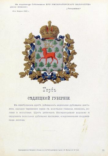 | Keywords: Седлецкая губерния из Бенке.jpg Official Russian Empire coat of arms Sedletz Governorate Ге б Российской Импе ии Седлецкой губе нии с официальным описанием в Ге бовнике Бенке Утве ждён Импе ато ом Все оссийским Александ ом Вто ым Ге бы губе ний и областей Российской Импе ии Отпечатано по аспо яжению минист а внут енних дел Санкт-Пете бу г Ка тог афическое заведение А А Ильина и типог афия инисте ства путей сообщения А Бенке 1880 / Scanned on paper album 1869 / 1880 published Russian Empire PD-old-100 PD-RusEmpire PD-RU-exempt coats of arms <gallery> File Седлецкая губ ВД Бенке jpg File Coat of Arms of Siedlce gubernia Russian empire png </gallery> Coats of arms of Sedletz Governorate Gerbovnik Benke Leaves in heraldry Oak wreaths in supporters Stags in heraldry Semy shields |