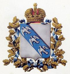 Keywords: Курская губ МВД Бенке.jpg Official Russian Empire coat of arms Kursk Governorate Гласный ге б Российской Импе ии Ку ской губе нии в Ге бовнике Бенке Утве ждён Импе ато ом Все оссийским Александ ом Вто ым в 1878 году Ге бы губе ний и областей Российской Импе ии Отпечатано по аспо яжению минист а внут енних дел Санкт-Пете бу г Ка тог афическое заведение А А Ильина и типог афия инисте ства путей сообщения А Бенке 1880 / Scanned on paper album 1878 / 1880 published Russian Empire PD-old PD-RusEmpire PD-RU-exempt coats of arms <gallery> File Ку ская губе ния из Бенке jpg File Ку ская губе ния изд Сукачова JPG File Coat of Arms of Kursk gubernia Russian empire png </gallery> <references/> Coats of arms of Kursk Governorate Russian canting arms Gerbovnik Benke |