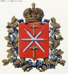 | Keywords: Тульская губ МВД Бенке.jpg \ Official Russian Empire coat of arms Tula Governorate Ге б Российской Импе ии Тульской губе нии в Ге бовнике ВД Утве ждён Импе ато ом Все оссийским Александ ом Вто ым в 1856 году Ге бы губе ний и областей Российской Импе ии Отпечатано по аспо яжению минист а внут енних дел Санкт-Пете бу г Ка тог афическое заведение А А Ильина и типог афия инисте ства путей сообщения А Бенке 1880 / Scanned on paper album 1856 / 1880 published Russian Empire PD-old PD-RusEmpire PD-RU-exempt coats of arms Coats of arms of Tula Governorate Gerbovnik Benke Swords in heraldry Hammers in heraldry |