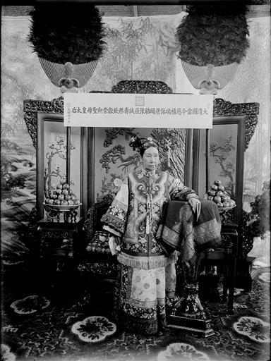 Keywords: 慈禧皇太后旧照(三).jpg zh-cn 慈禧皇太后旧照 Smithonian Institute Yu Xunling 1900 PD-art PD-old PD-China Yu Xunling Empress Dowager Cixi 19th-century portrait photographs of standing women at full length 1900