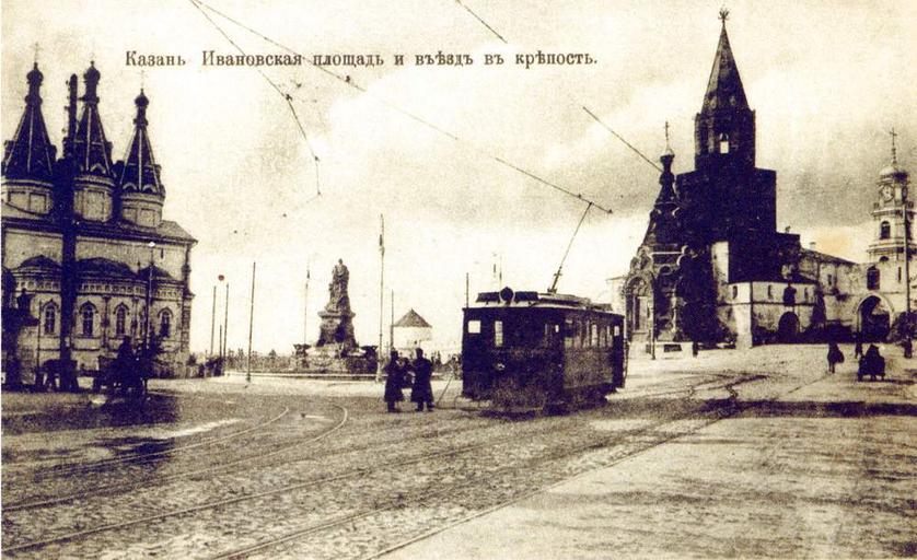 Keywords: Казань. Ивановская площадь.jpg ru Казань Ивановская площадь и въезд в к епость postcard author before 1917 PD-old Postcards of Kazan Trams in Kazan May Day Square Kazan