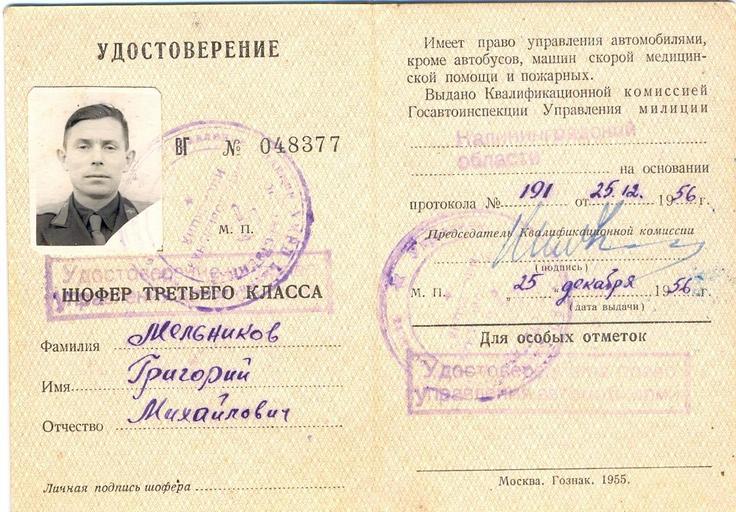 Keywords: Удостоверение шофера.jpg ru Удостове ение шофе а 3 класса 1956-12-25 own Oleg1959 PD-RU-exempt Driver's licenses of the Soviet Union