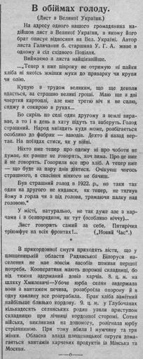 | Keywords: В обіймах голоду (Лист з Великої України).jpg uk ате іали д укованої п еси науково-довідкової бібліотеки де жавного а хіву Че нівецької області які висвітлюють події Голодомо у на Ук аїні 1932 1933 оків Газета Час 22 бе езня 1932 1020 с 1 Author 1932 Holodomor 1932 newspapers PD-old Funds of state archive of Chernivtsi Oblast |