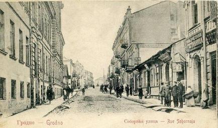 Keywords: Савецкая-універмаг.jpg be-tarask Забудова вуліцы Сабо най Савецкая у Г одне пач 20 ст Уласны файл Удзельнік Павел Пет о Пачатак 20 ст PD-old Savieckaja Street Hrodna