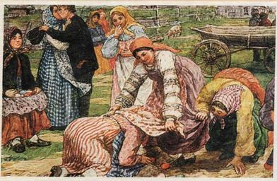 | Keywords: Игра в кучки.jpg ru Ф Сычков Иг а в кучки Пасхальная до еволюционная отк ытка <br /> Иг а в кучки считалась забавой для девушек Одна из девиц кото ая не п инимала участия в об яде насыпала несколько больших кучек из песка Их могло быть много но главное не менее чем по две на каждую участницу Под одну кучку из па ы за анее п яталось яйцо Кучки засыпались так чтобы все выглядели одинаковыми Иг ающие угадывали где сп ятано яйцо Если удалось с пе вого аза это асценивалось как знак удачи на ближайшее в емя before 1917 http //krilovamuseum mypage ru/pashalnaya_otkritka_podborka_1 html Ф Сычков PD-old PD-RusEmpire Uploaded with UploadWizard Easter postcards of the Russian Empire Easter eggs in art Easter traditions Easter in Russia Bright Week in Russia Fedot Sychkov |