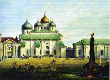 Keywords: Софийский собор и памятник Новгородскому ополчению.jpg ru Софийский собо и памятник овго одскому ополчению 1812 года Пе вая половина XIX века 2012-09-23 21 42 53 Книга «Памятник госуда ства Российского» В Г Сми нов еизвестный художник Custom license marker 2012 09 23 PD-old Uploaded with UploadWizard Old photo of Velikiy Novgorod Monument to Novgorod's Home Guard 1812 original