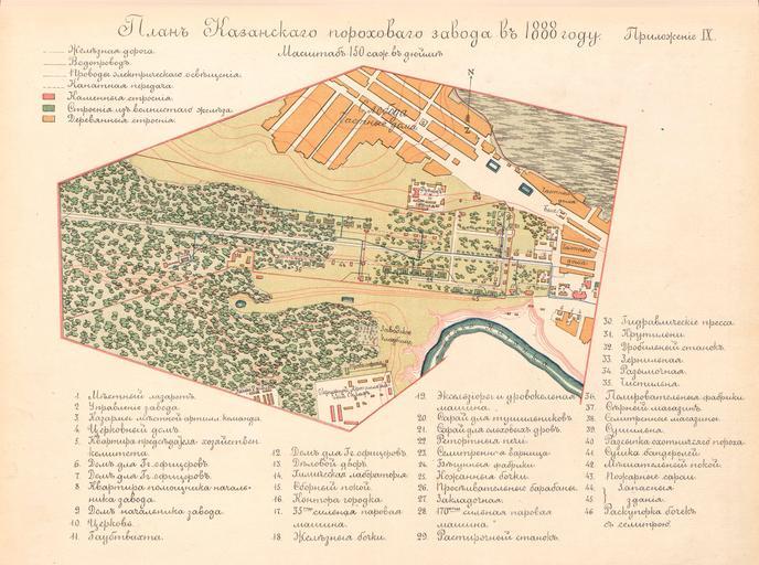Keywords: План Казанского порохового завода в 1888 году.png ru План Казанского по охового завода в 1888 году Из книги Глинский А С 100 лет Казанского по охового завода - СПб Типог афия А тилле ийского Жу нала 1888 - П иложение IX http //russian-maps livejournal com/35697 html page 1888 А С Глинский PD-RusEmpire Historical maps of Kazan Kazan Gunpowder Plant PD-old |