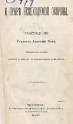 Keywords: О праве необходимой обороны.jpeg А Ф Кони издана в 1866 году http //dlib rsl ru/viewer/01003568483 page 5 Российская госуда ственная библиотека 1866 author PD-old Koni Anatolii Fedorovich Title pages from Russia Title pages in Russian 1866 books |