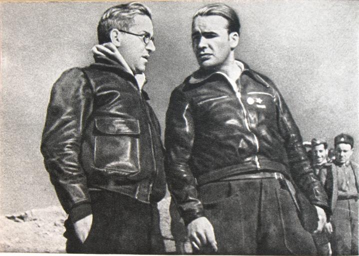 Keywords: Кольцов Энрике Листер.JPG Fotografía de Mijaíl Koltsov izquierda y el militar republicano Enrique Líster derecha Photo of Mikhail Koltsov l and Enrike Lister r ru После неудачной осады Алькаса а в Толедо колонна еспубликанца Эн ике Листе а отступила на юг Сп ава - Кольцов слева - Э Листе / Испанский дневник own photo Mikhail Koltsov / Снято на фотоаппа ат ФЭД ихаила Кольцова имеющий автоспуск Фотоаппа ат находится чуть выше у овня земли October - novenber 1936 / after 1936-09-27 PD-old-70 Photographs by Mikhail Koltsov Mikhail Koltsov Spanish Civil War 1936 in Spain Enrique Líster Siege of the Alcazar