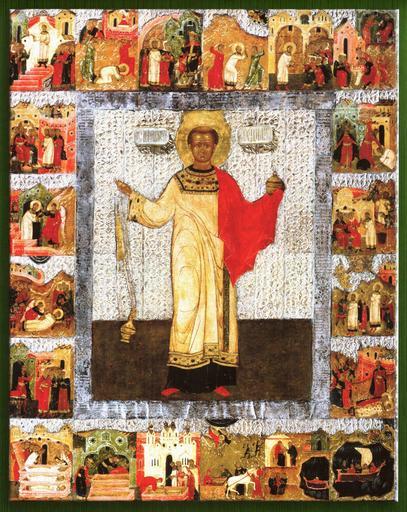 Keywords: Архидиакон Стефан с житием 1658.jpg Saint Stephen Russian icon 1658 А хидиакон Стефан с житием в 20 клеймах Русская икона 1658 года на де еве естонахождение иконы не указано Спасите наши души жу нал 2009 еп одукция / scan century 16 1658 Unk PD-art-100 Icons of Saint Stephen 16th-century icons of Russia Vita icon |