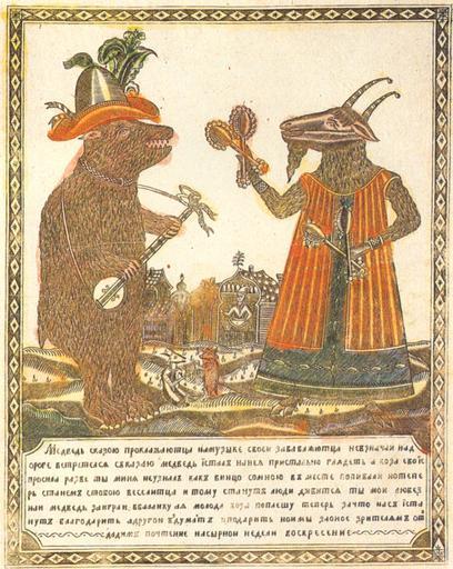 | Keywords: Медведь с козой прохлаждаются 1830.jpg ru едведь с козой п охлаждаются Г авю а на меди аск аска 1830-е гг s 1830 http //www booksite ru/fulltext/teatr/23 htm Author Custom license marker 2013 03 09 PD-old-100 Bear comedy in Russia Bear guiding rite in Russia Lubok |