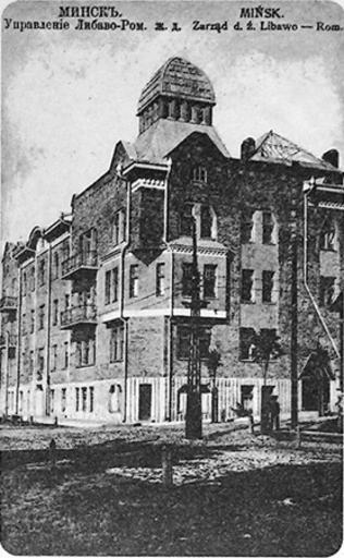 Keywords: Упраўленне Лібава-Роменскай чыгункі.jpg Уп аўленне Лібава-Роменскай чыгункі В Целеш - альбом Га ады Бела усі на ста ых паштоўках енск Бела усь 2001 http //www oldmensk net/publ/vulicy/valadarskaga/dom_11/39-1-0-38 PD-old Kastravickaja House