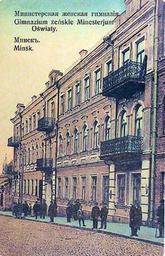 Keywords: Урадавая жаночая гімназія, вул. Праабражэнская.jpg У адавая жаночая гімназія Знаходзілася на П ааб ажэнскай вуліцы Валада скага В Целеш - альбом Га ады Бела усі на ста ых паштоўках енск Бела усь 2001 http //www oldmensk net/publ/vulicy/valadarskaga/vul_valadarskaga/39-1-0-24 century 20 PD-old Valadarskaha street Minsk |