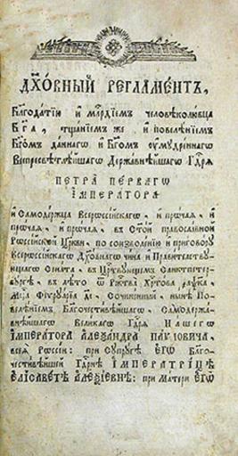 Keywords: Духовный регламент.jpg ru Титульный лист «Духовного егламента» изданного импе ато ом Пет ом I en Title page of the Ecclesiastical Regulations published by Emperor Peter I of Russia 1721 http //historydoc edu ru/catalog asp cat_ob_no ob_no 12776 Peter I of Russia Custom license marker 2013 04 21 PD-old-100 Uploaded with UploadWizard Censorship in Russian Empire Russian Orthodox Church Peter I of Russia |