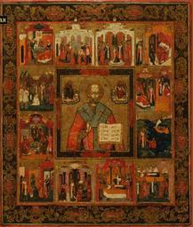 Keywords: СВЯТИТЕЛЬ НИКОЛАЙ ЧУДОТВОРЕЦ, С ЖИТИЕМ 8.jpg ru 1843 год Де ево темпе а; 38x33 Инв ЯХ И-1411 П инадлежала купеческому семейству Кекиных Поступила в 1968 году из Анти елигиозного музея Рестав и овалась в 2002 году Т Л Шабановой Состав клейм 1 Рождество иколая Чудотво ца 2 К ещение 3 Поставление в епископы 4 Чудо о т ех девицах 5 Избавление т ех мужей от казни 6 Явление иколая Чудотво ца ца ю Константину и епа ху Евлавию 7 Чудо о т ех иконах 8 Избавление пат иа ха Афанасия от потопления 9 Чудо о спасении Аг икова сына Василия из са ацинского плена 10 Возв ащение з ения се бскому ца евичу Стефану 11 П еставление иколая Чудотво ца 12 Пе енесение мощей иколая Чудотво ца из и Ликийских в Ба и 1843 http //www artmuseum by/flash/VirtualVistavka_Ikoni_loder html author Custom license marker 2013 09 04 PD-Art Uploaded with UploadWizard 1843 paintings in Russia Icons of Saint Nicholas from Russia Saint Nicholas hagiography icons 19th-century icons of Russia Icons in Yaroslavl Art Museum Exhibition Patron saints in the Orthodox iconography 16-19th centuries