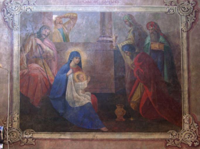 | Keywords: Храм Рождества Христова (Уланок). Поклонение волхвов.jpg ru астенная оспись «Поклонение волхвов» в х аме Рождества Х истова в селе Уланок Суджанского айона Ку ской области Вто ая половина XIX века http //shulika-art kh ua/28st html author PD-Art Uploaded with UploadWizard Church of the Nativity Ulanok |