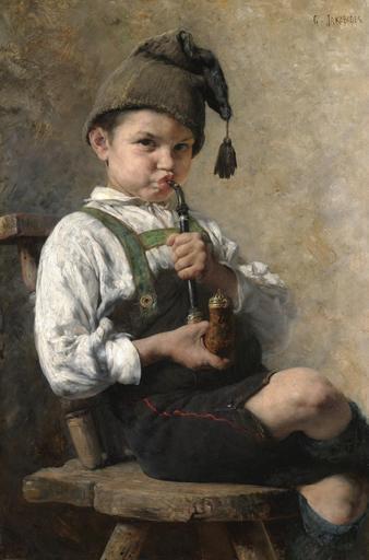 | Keywords: Γεώργιος Ιακωβίδης - Η καινούρια πίπα του παππού (1886).jpg Artwork creator Georgios Jakobides 1886 oil canvas cm 75 5 50 accession number object history Private Collection Athens exhibition history Munich Exhibition of Fine Arts 1886 as The Smoker <br/>Berlin Internationale Kunstausstellung Verein Berliner Künstler 1891 no 536 as The Smoker <br/>Athens National Gallery and Alexandros Soutzos Museum Jakobides Retrospective November 2005 - January 2006 credit line upper right signature / date http //www sothebys com/en/auctions/ecatalogue/2008/the-greek-sale-l08100/lot 9 html Sotheby's London 17 April 2008 lot 9 PD-old-auto-1923 1932 DEFAULTSORT Georgios Jakobides; Grandpa's new pipe; Sotheby's 2008 Georgios Jakobides Smoking boys in art Images from Sotheby's |