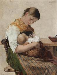 | Keywords: Γεώργιος Ιακωβίδης - Μητρική στοργή.jpg  Artwork creator Georgios Jakobides oil canvas cm 28 22 accession number object history Sale Sotheby's London 23 November 1988 lot 322<br/> Private Collection Athens exhibition history Athens National Gallery and Alexandros Soutzos Museum Jakobides Retrospective November 2005 - January 2006 credit line G Jakobides upper right signature http //www sothebys com/en/auctions/ecatalogue/2008/the-greek-sale-l08100/lot 7 html Sotheby's London 17 April 2008 lot 7 PD-old-auto-1923 1932 DEFAULTSORT Georgios Jakobides; Mother and child; Sotheby's 2008 Georgios Jakobides Mother and child in art Images from Sotheby's |