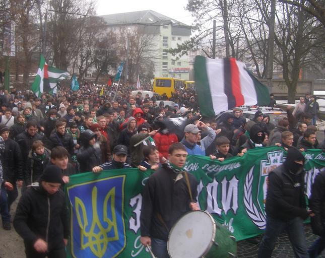 | Keywords: Марш фанів Карпат Львів 27 лютого 2010 (на Зеленій).jpg  de Fans von Karpaty Lwiw marschieren an der Selena Straße vor dem Spiel gegen Metalist uk  а ш уболівальників Ка пат Львів пе ед г ою з  еталістом на вулиці Зеленій own PavloFriend 2010-02-27 FC Karpaty Lviv supporters |