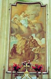 | Keywords: Цэнтральны абраз алтара св. Францішка..jpg be Цэнт альны аб аз алта а св Ф анцішка ХVІІІ http //media catholic by/nv/n16/art3gallery htm author Custom license marker 2014 05 20 PD-Art Uploaded with UploadWizard Frescos of crucifixion in Belarus Church of the Assumption of Mary in Budslaŭ Frescos of Saint Francis of Assisi in Belarus 18th-century frescos in Belarus | ||||