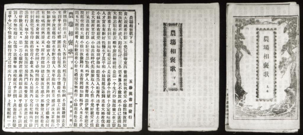 | Keywords: 農場相褒歌.jpg zh-tw 日治時 的歌仔冊,係以漳泉俗語 腔文字寫的歌詞,此文字記載是可貴的 方 俗字 研究的好資料,內容是台南州嘉義市西 町 丁目十七番 ,玉珍漢書部於1934年發行的 農場相褒歌 上 下冊 2014-06-22 17 32 01 http //nrch cca gov tw/ccahome/music/music_coll_item jsp dtdid 232 collectionname E5 8F B0 E7 81 A3 E9 9F B3 E6 A8 82 E4 B8 80 E7 99 BE E5 B9 B4 E5 9C 96 E5 83 8F E8 B3 87 E6 96 99 E6 95 B8 E4 BD 8D E5 8C 96 E8 A8 88 E7 95 AB group_by_index group_by_value page 22 pagesize 9 日治時 歌仔冊 家文化資料庫 anonymous PD-old-auto Music of Taiwan Taiwanese language Uploaded with UploadWizard |