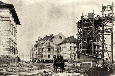 | Keywords: Розбудова закладу на Кульпаркові. Фотограф Марек Мюнц.jpg  uk Розбудова закладу для душевно хво их на Кульпа кові у Львові Powiększenie zakładu dla obłąkanych w Kulparkowie // Nowosci Illustrowane 1905  35 p 8 1905 Marek Münz 1878 1937 PD-Polish PD-old 95 Kulparkivska Street |