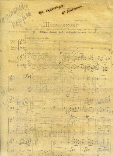 | Keywords: К. Стеценко. «Шевченкові». Кантата для мішаного хору у супроводі фортепіано на слова К. Малицької.jpg uk К Стеценко «Шевченкові» Кантата для мішаного хо у у суп оводі фо тепіано на слова К алицької написана до 100- іччя від дня на одження Т Шевченка Авто ська ко екту а 1914 ЦДА Л Ук аїни ф 175 оп 1 од зб 7 а к 1 2014-09-30 20 44 15 http //csam archives gov ua author other versions PD-Art Kyrylo Stetsenko Uploaded with UploadWizard | ||||
