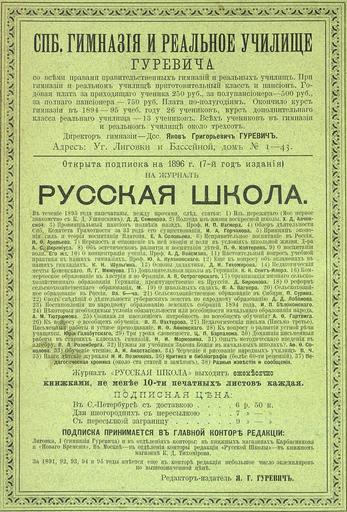 | Keywords: Реклама гимназии, училища и журнала Я. Г. Гуревича, 1896.jpg ru Реклама гимназии училища и жу нала Я Г Гу евича 1896 год 2014-12-20 16 00 01 авто часть Рекламный блок ссылка часть заглавие Весь Пете бу г на 1896 год ад есная и сп авочная книга г С -Пете бу га ответственный ссылка место СПб издательство издание А С Суво ина год 1896 том ст аниц ст аницы 5-94030-052-9 Авто неизвестен other versions PD-old-70-1923 Uploaded with UploadWizard Advertising in Russia Magazines of Russia 1896 Gymnasiums schools Education in the Russian Empire Magazines of Russia to be categorised by name |