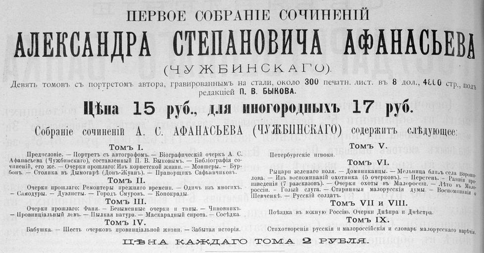 | View Original: | Реклама_полного_собрания_сочинений_Афанасьева-Чужбинского,_1894.jpg (2877x1506) | |||