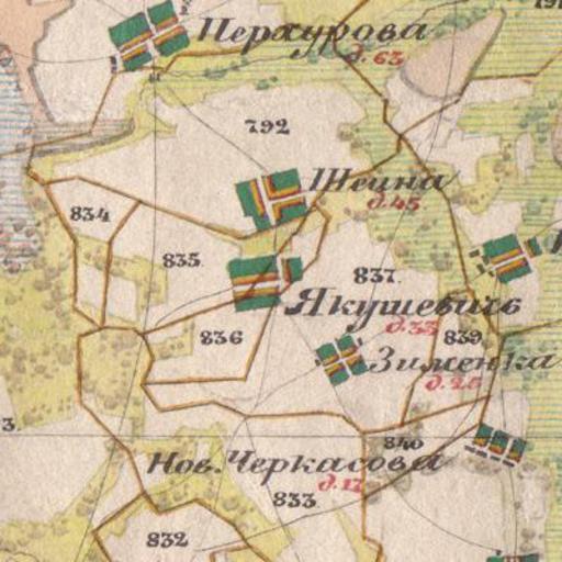 View Original:Деревня_Якушевичи_на_карте_1850_года.jpg (400x400)