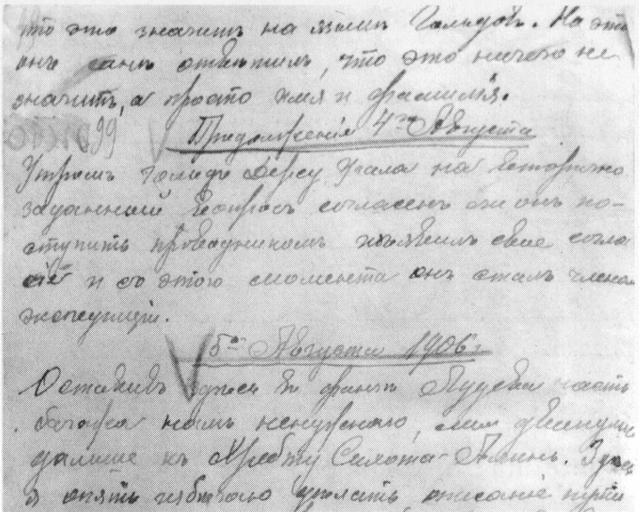 View Original:Страница_путевого_дневника_В._К._Арсеньева_от_4_(17)_августа_1906_г.,_с_записью_о_согласии_Дерсу_Узала_стать_проводником.png (1500x1201)
