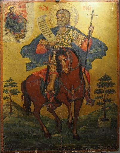 | Keywords: Γεώργιος Καστροφύλακας - Άγιος Μήνας 7720.jpg en Saint Menas by Georgios Kastrofylakas 1738 From the old metropolitan church of Agios Minas and Pantanassa now part of the Collection of Agia Aikaterini 2015-03-19 21 42 56 photographed by C messier Georgios Kastrofylakas 18th century other versions PD-Art Uploaded with UploadWizard Collection of Agia Aikaterini Heraklion Saint Menas in icons icons with horses Cretan School | ||||