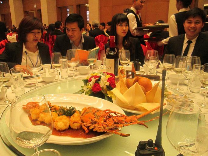 Keywords: people groupshot indoor meal food buffet table dinner table dining table