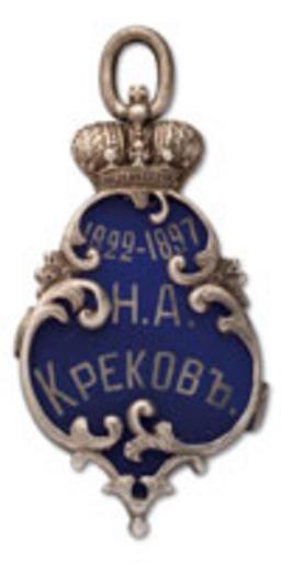 View Original:Жетон_КВТ_коллежского_советника_(_5_июня_1897)_Крекова_Николая_Авксентьевич.jpg (100x200)